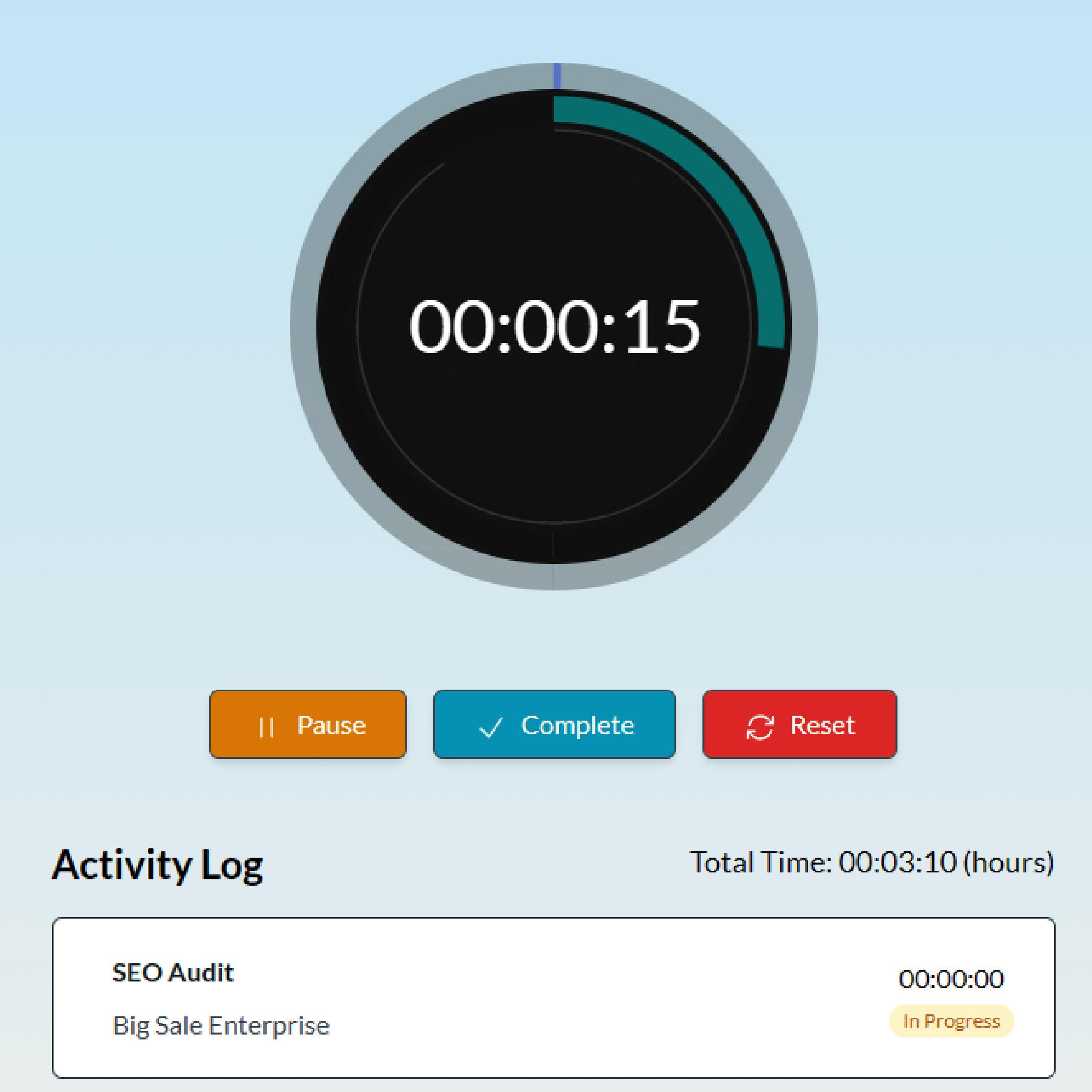 Simply click on "Start New Activity" to log a new task and start the timer to track the time spent on those activities